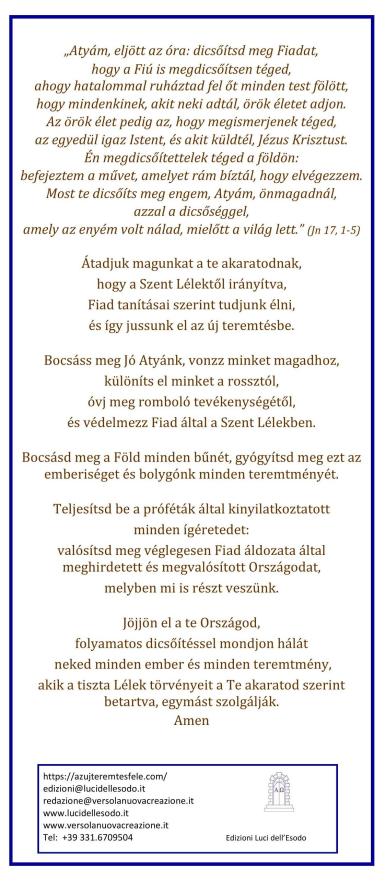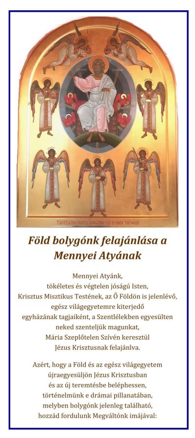 Föld bolygónk felajánlása a Mennyei Atyának Megosztás: Nyomtatás(Új ablakban nyílik meg) Nyomtatás Email a link to a friend(Új ablakban nyílik meg) E-mail Share on Telegram(Új ablakban nyílik meg) Telegram Share on WhatsApp(Új ablakban nyílik meg) WhatsApp BejegyzésTetszik Betöltés... Correlati