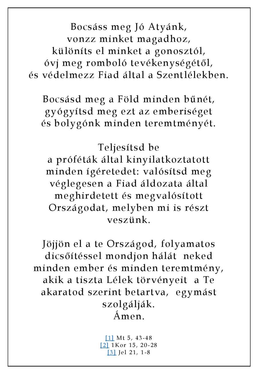 Felajánlás a Mennyei Atyának Megosztás: Nyomtatás(Új ablakban nyílik meg) Nyomtatás Email a link to a friend(Új ablakban nyílik meg) E-mail Share on Telegram(Új ablakban nyílik meg) Telegram Share on WhatsApp(Új ablakban nyílik meg) WhatsApp BejegyzésTetszik Betöltés...