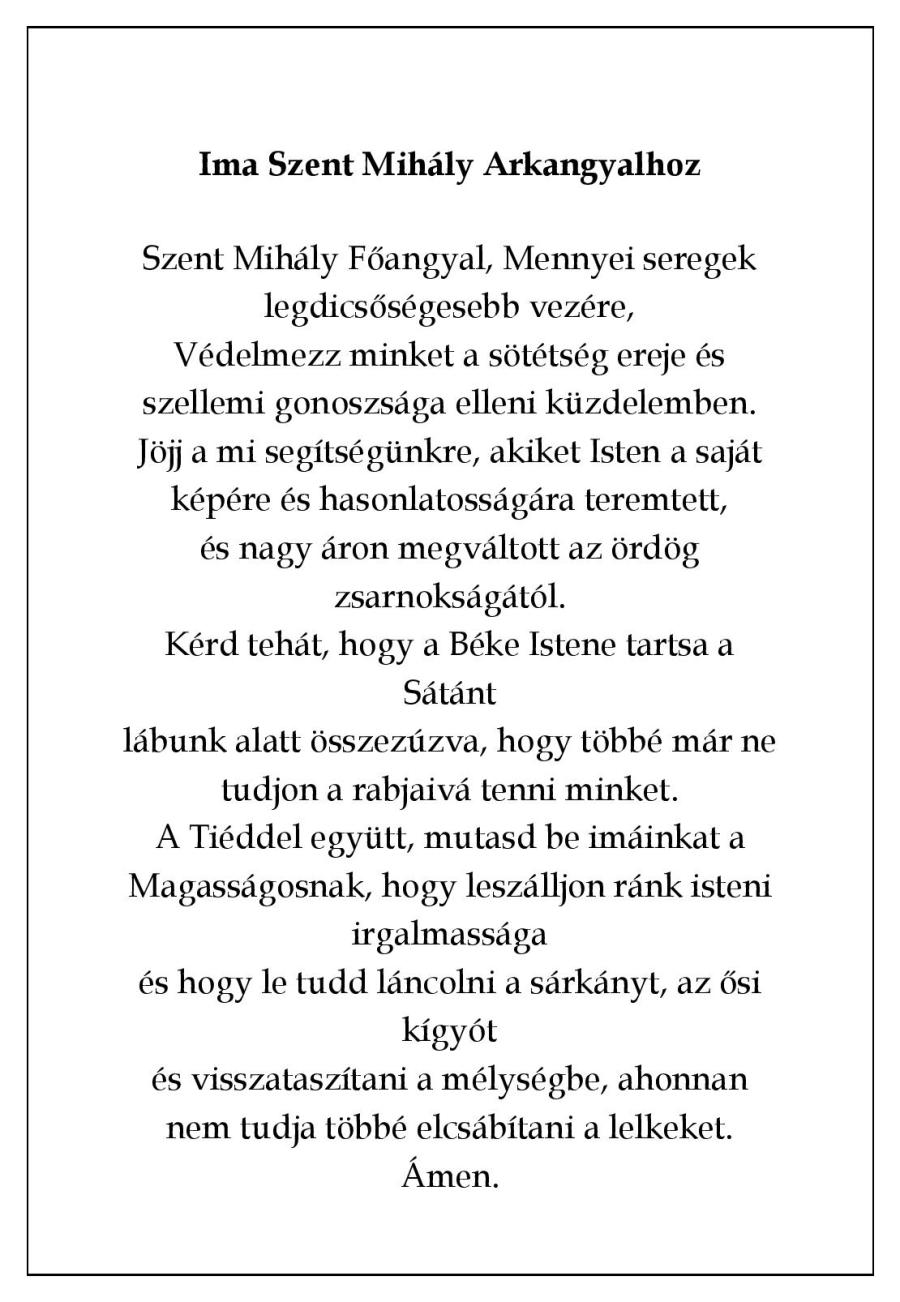 Ima Szent Mihály arkangyalhoz Megosztás: Nyomtatás(Új ablakban nyílik meg) Nyomtatás Email a link to a friend(Új ablakban nyílik meg) E-mail Share on Telegram(Új ablakban nyílik meg) Telegram Share on WhatsApp(Új ablakban nyílik meg) WhatsApp BejegyzésTetszik Betöltés...
